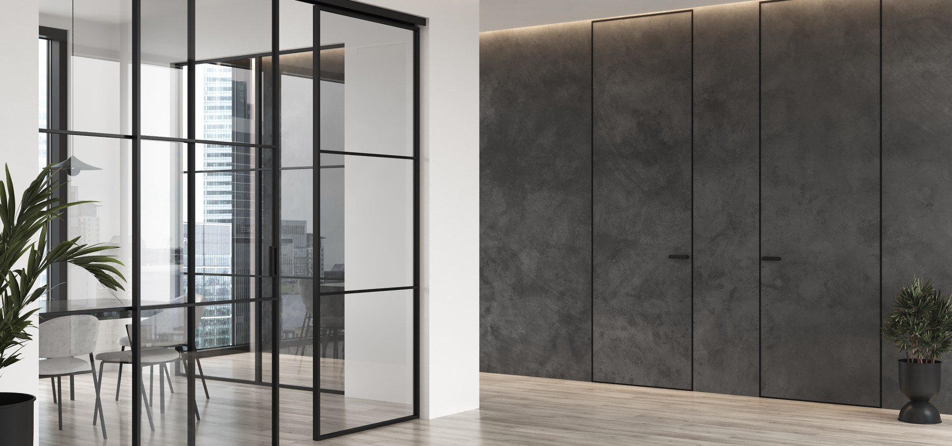 Durvis krāsošanai ar alumīnija karkasu - lielisks veids, kā vizuāli palielināt vietu telpā, uzstādot kārbu vienā plaknē ar sienu.Efekts tiek panākts a..